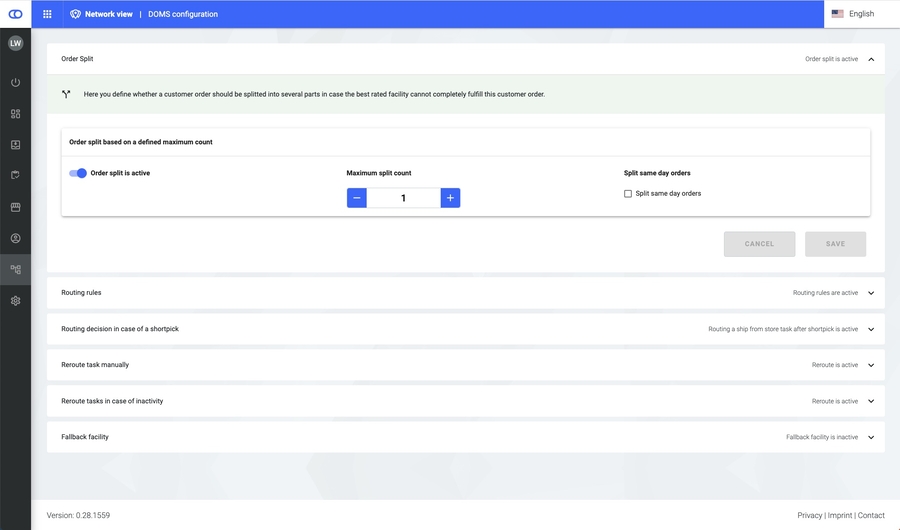 The distributed order management system (DOMS) is a backend component that orchestrates incoming orders from the online shop and decides where and how the orders can be fulfilled best. Rhe The routing strategy is considered to meet the end customers' needs best. Based on thes configured strategy, the DOMS decides in which warehouse or store the order should be fulfilled.