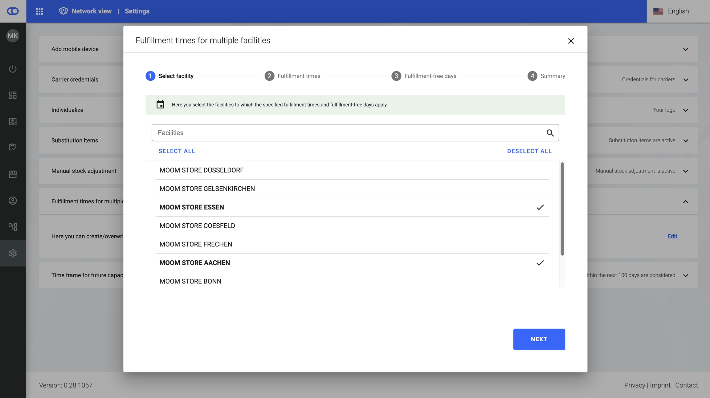 Either select all facilities or only those for which the fulfillment times should be changed