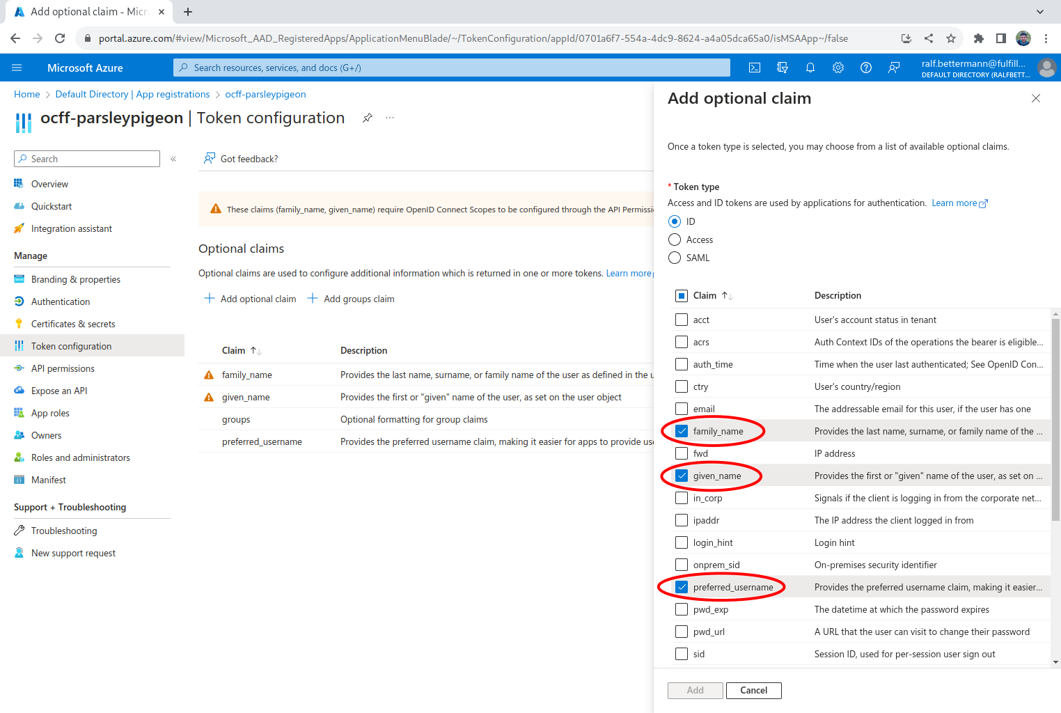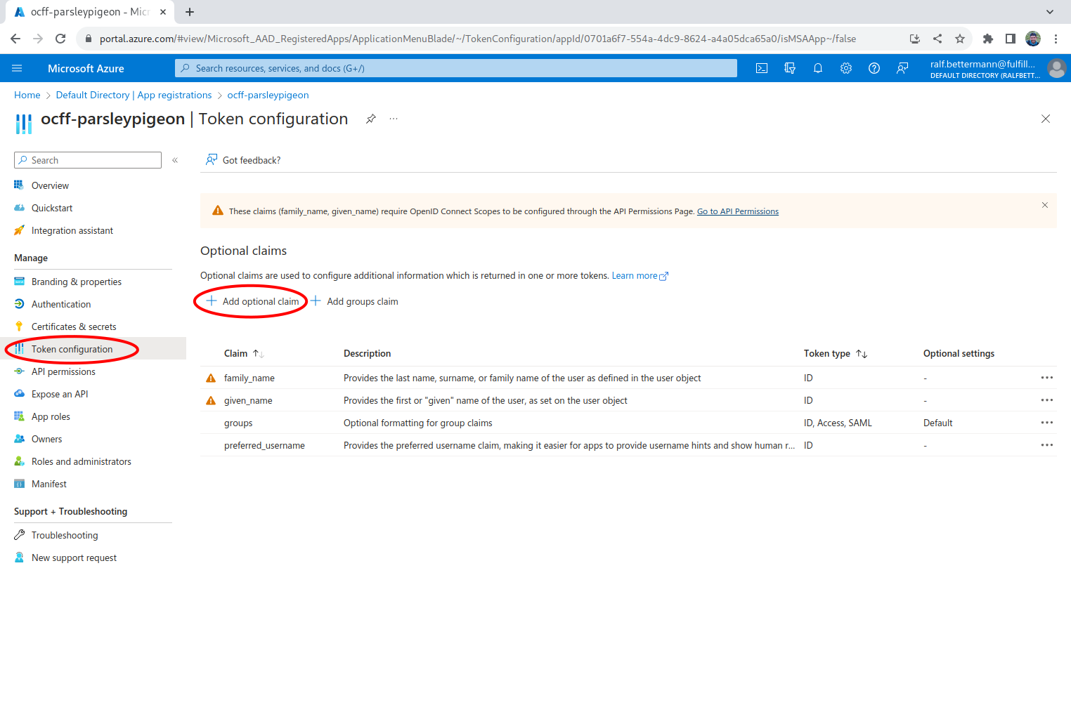 Adding optional claims to the token