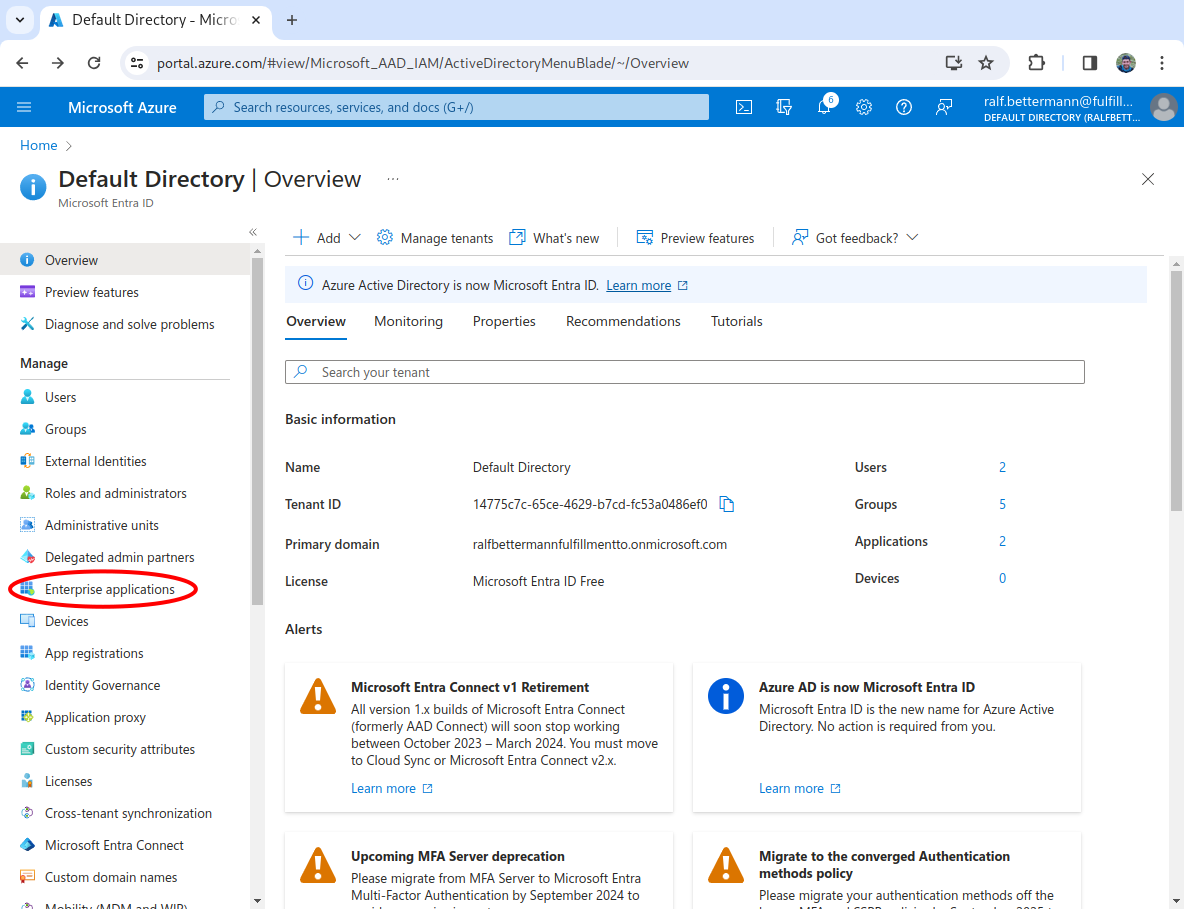 Logged into the Microsoft Entra admin center
