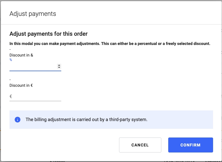 "en_US": "In this modal you can make payment adjustments. This can either be a percentual or a freely selected discount."