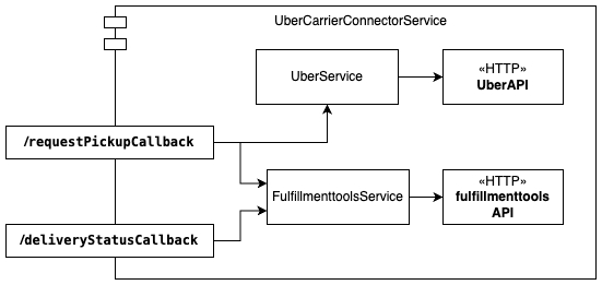 Write a “Uber Carrier Connector Service” to handle the trigger event from fulfillmenttools