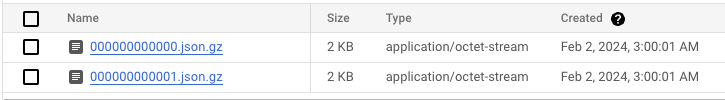 For each day, the system creates a folder in the bucket with the pattern YYYY-MM-DD that contains the events for that day.