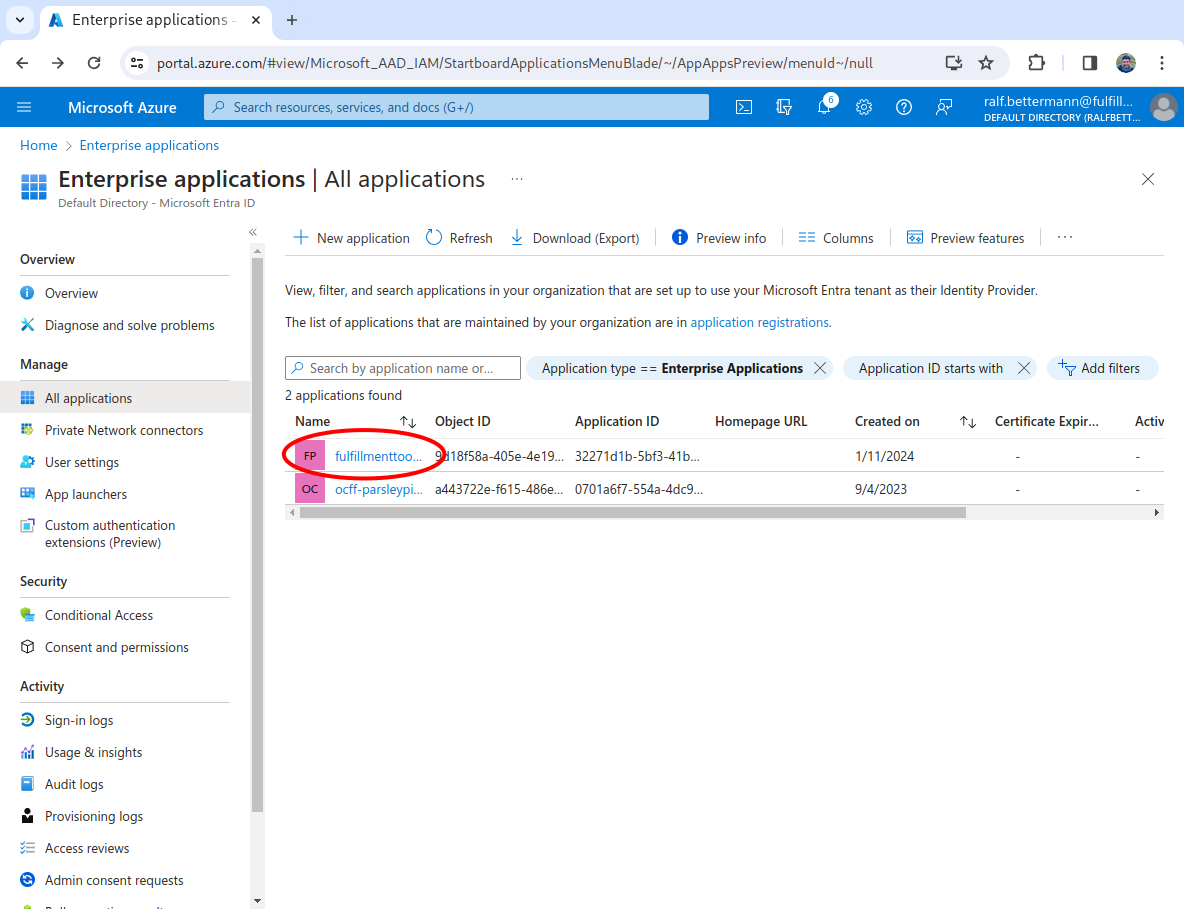 A separate app registration must be created for each fulfillmenttools environment (for example, one for pre-production and one for production).