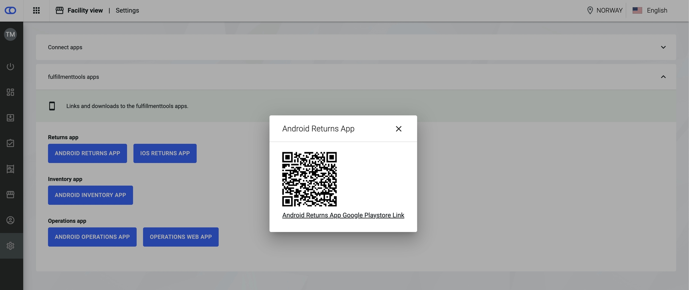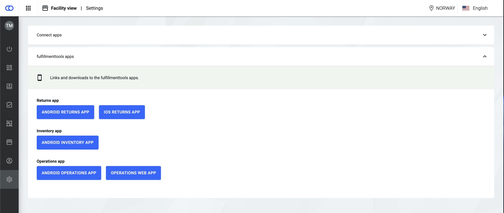 All our apps are now listed on both the facility view settings and the network view settings page under "fulfillmenttools apps" including a link to the respective app store.