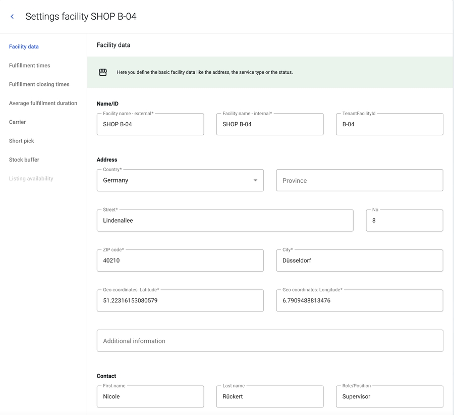 Facility groups can be used to mark individual facilities as belonging to a specific group. A facility can be part of several facility groups. Facility groups can be created, edited and deleted via REST API. Facility groups can be used, for example, to define sales prices for certain facility groups.
